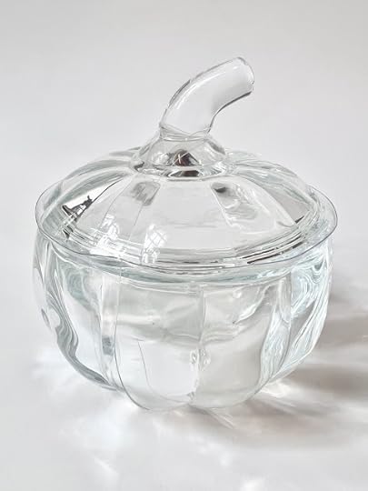 That purple and lime-green Halloween décor isn't anything I can ever imagine using for teatime, but a glass pumpkin about the size of a sugar bowl? Yes, thank you very much, and I will use it for whipped cream or honey or sugar cubes or something at teatime. Since these are already marked down so much, I wanted to go ahead and mention them now in case you're interested, because you know the Christmas décor will be going up any minute now!