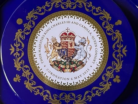 Okay, before we move on with this week, I feel the need to process the Coronation. I must admit that for the first time I can remember, I didn't have even a small celebration to mark such a grand Royal occasion, but an old friend's daughter had just died of cancer at only 35 years old, and so I just didn't find it appropriate to plan a big gala this year, especially since I was headed out of town for the memorial that evening. (Plus, I didn't get my new book sent off to my editor until late the afternoon of my birthday, so I was a bit wiped out for a lot of reasons last week!) All that said, I did get up in time to watch the event and quietly sip my Coronation Tea (that's the lid above).