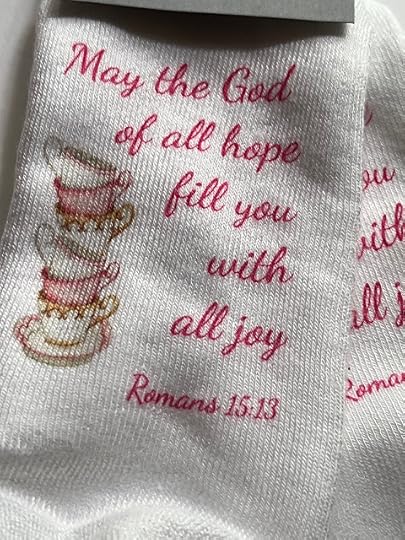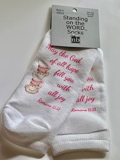 Aren't these great? And Romans 15:13 is one of my favorite Bible verses, which makes me love these socks even more.