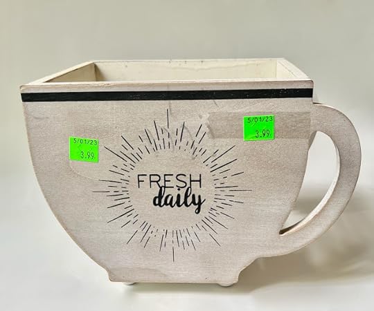 And when I saw this wooden teacup container/basket/bin, I immediately thought of the upcycling possibilities for its use in my craft room. Now that I've launched a new book and finished the first draft of the second book in the series, I plan to take some time to chill and play in my craft room. One thing that's been on my wish list for a while is a new organizing system for craft supplies, and if I paint this pink or turquoise, I suspect it will be just the thing I need! (Would you decoupage a design on it or leave it plain? I'm torn!)