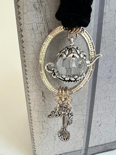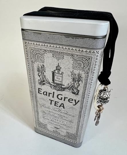 Fashioned on a lush black velvet ribbon, the necklace was tucked inside this beautiful tin that says “Earl Grey Tea” on it! I know that I will treasure both of these items forever.