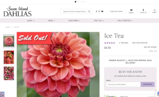 Every spring, it seems, I get a bee in my bonnet to go looking for plants with “tea” in the name. I’d been reading a new book that mentioned that dahlias are not that hard to grow, so I told myself, “Self, let’s go find a dahlia with tea in the title!” And before I knew it, I was chasing down an “Ice (or Iced) Tea” dahlia tuber. Now Swan Island Dahlias is apparently the granddaddy of dahlia purveyors, with a beautiful website, and that’s where I first saw the image of this dahlia. Its gorgeous ombre coloring reminds me of my "grombre" hair when I was growing out the gray a few years back, a topic dear to my heart since the #grombre movement (seriously! it’s a thing!) is a topic in my next cozy mystery. So this ombre dahlia was one I had to have, only … "Sold out! Out of stock!" the website said.