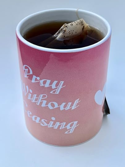 I wish I'd thought to take a photo of all of them, because she had different sayings and verses on the mugs, which I believe included blue and yellow ones, too, but the pink ombre one was calling my name and will serve as a good reminder to "pray without ceasing." And for those of you who are crafters, she made these with her Cricut machine. I don't own one (although goodness knows I've been tempted), but I thought those were strictly for making vinyl to go on things. I had no idea you could make mugs with a Cricut!