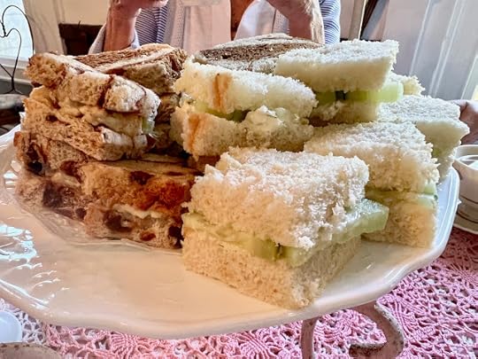 And we had a nice variety of finger sandwiches, including cucumber, pimiento, and chicken salad on both raisin bread and marbled rye.