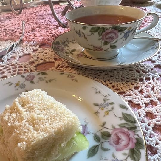 A classic cucumber sandwich will probably always be my favorite. Susan had a huge selection of loose teas as well as tea bags for us to choose from, and I opted for some caramel-flavored tea from Republic of Tea, which I enjoy and hadn't had in a while. We also had cheese straws, several different types of cookies, and dessert bars. Somehow, this lovely teatime managed to be both casual and elegant!