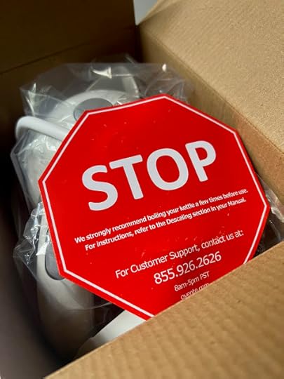 When I opened the box, I thought the "STOP" warning was kind of hard to overlook. "We strongly recommend boiling your kettle a few times." Really?