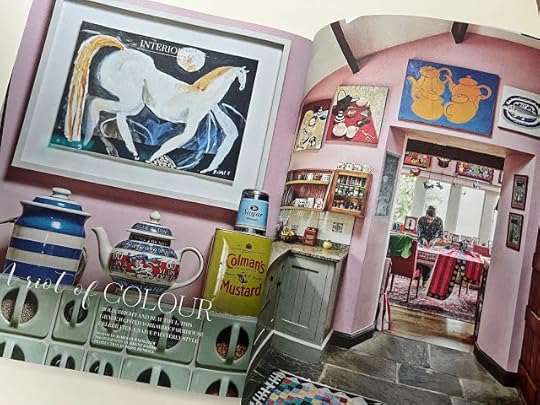 In this spread, I first noticed the distinctive Emma Bridgewater teapot at left, then I noticed the artwork at top right. Wouldn't it be fun to collect colorful tea-themed artwork? Hmm…