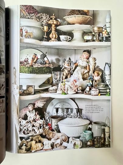 Finally, I absolutely love coming across a photo of a hodgepodge of collectibles. A teacup, bowls, dolls, glassware … What catches your eye?