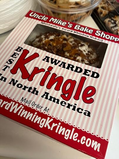 When Heather's family arrived, they came bearing gifts, including a favorite sweet, the Sea Salt Caramel Kringle from Uncle Mike's Bake Shoppe, a Green Bay bakery that we love-love-love.