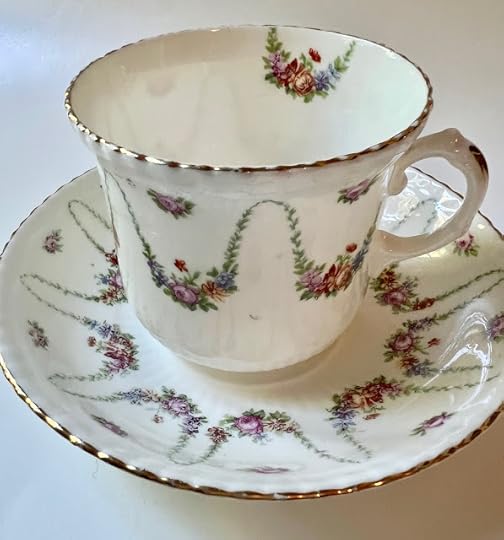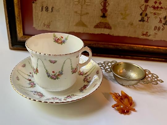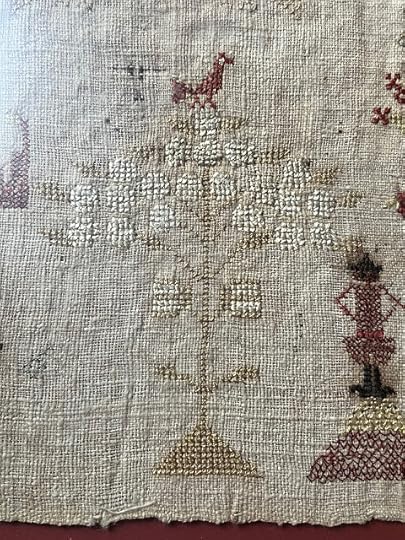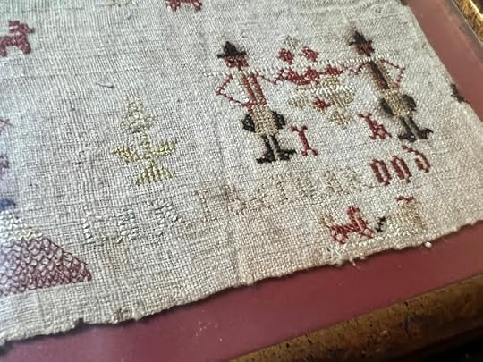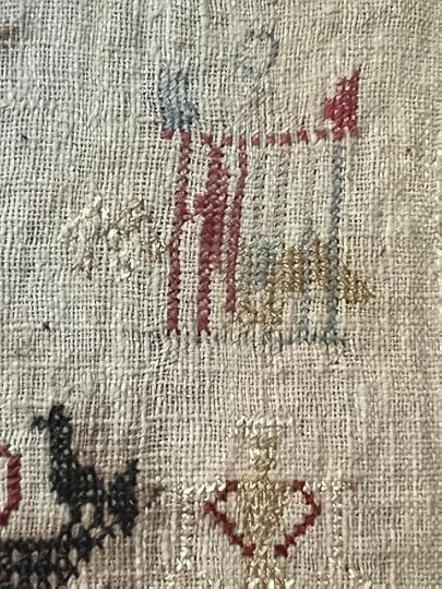 Here's another view. Guesses welcome. Meanwhile, I'll be sipping from a lovely new garlanded teacup as I study this sampler and work on one of my own!