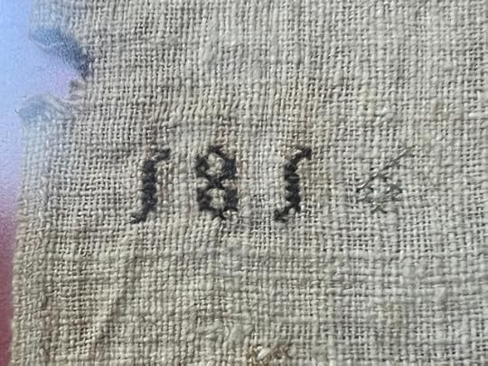 The big mystery: What is the maker's name? These faded stitches are difficult to read, but the first four letters look like "Cari," which is curious since that's how one of my nieces spells her name. (Alex thinks I'm seeing things, and he may be right.) Those first three letters are stitched in a very pale blue, though, so maybe CAR stands for the maker's initials and the last part is something else?