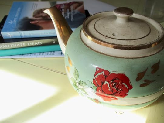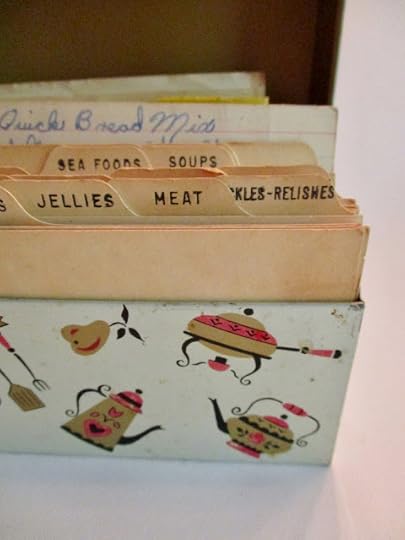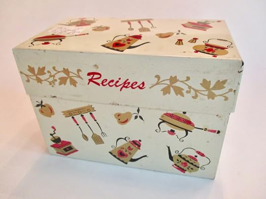 So my birthday was Wednesday (58, for those who wonder, and I'm grateful for each of those years), and the day started on a lovely note with some wonderful gifts from my husband. He apparently went to great lengths in his shopping this year, finding things related to writing and books as well as several goodies pertaining to teatime. The gift that thrilled me most, by far, was this vintage recipe tin with a teakettle on it that he found at an antique mall!
