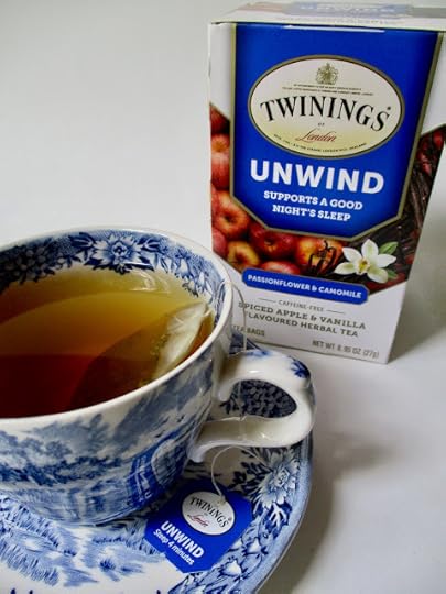 A new herbal tea blend at Ollie's caught my eye the other day, and it was this "Unwind" Passionflower & Camomile tea from Twinings, which, curiously enough, is a spiced apple and vanilla blend. I found the description a bit confusing, but then I read on and discovered that it contains all of those things, so there you go. (The Brits, by the way, can spell it "camomile" all they like, but I'm going with "chamomile" because that missing "h" drives me nuts.)