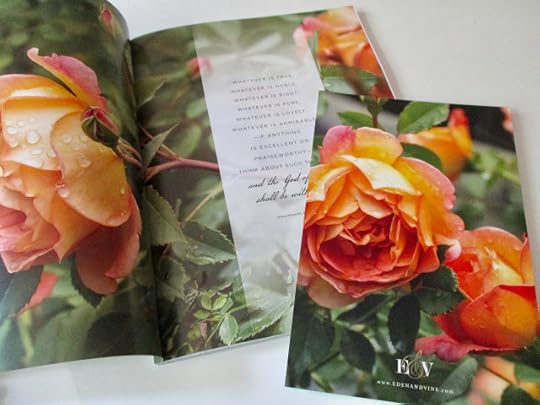 Have you noticed that sometimes, social media nails it on their ad preferences for you, and sometimes, they really, really don't? I actually kind of like it when my various news feeds suggest articles and products I would never be interested in, because that saves me time (in reading) and money (in ordering). So there's that. But when an ad popped into my feed a while back (on Instagram, I believe) for this absolutely gorgeous magazine called Eden & Vine, a magazine "dedicated to the cultivation of beauty and truth in everyday life," I checked out their website here and liked what I saw, so I ordered the latest copy. Isn't that cover delightful?