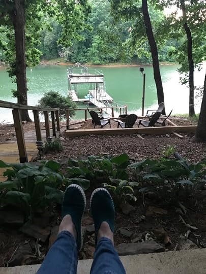 Rocking chairs and a swing on the front porch, a screened-in deck overlooking the lake, and another swing near the dock leading down to the lake were just a few of the many amenities. I should have taken more photos of the lovely home, but I was too busy chatting and crafting. I think all of us, though, managed to steal a few quiet moments alone. Here's a photo I snapped to send my husband while we were chatting on the phone one evening while I was away.