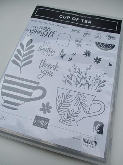 Downstairs, we each had our own crafting table complete with lighting, outlets, trash can, and a clamp-on water bottle holder. (Forgot to take photos! Sorry!) But what I did remember to photograph when I got home was the primary craft I worked on at the retreat—new cards I made using the Cup of Tea bundle from Stampin' Up. I had ordered the supplies from my demonstrator friend Kathy and asked her to just bring them to the retreat.