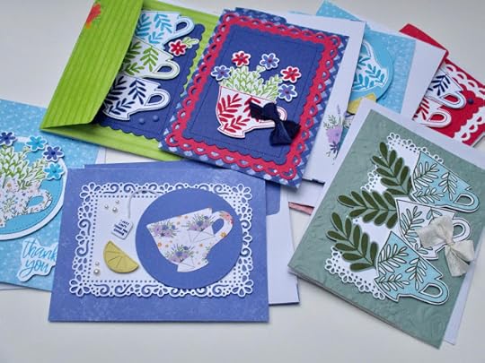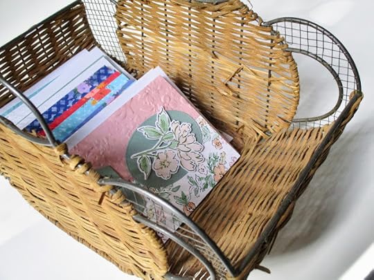 The two types of cards I make the most are thank-you cards (pure joy) and sympathy cards (not so much), but I know from experience how much a handmade card can mean to someone who is grieving, and I'm determined to get ahead on sympathy cards so I will always have one ready to pop in the mail. So between my new craft supply tote and my card basket/tote, I'm feeling a little more organized—and grateful for the fun new teatime totes!