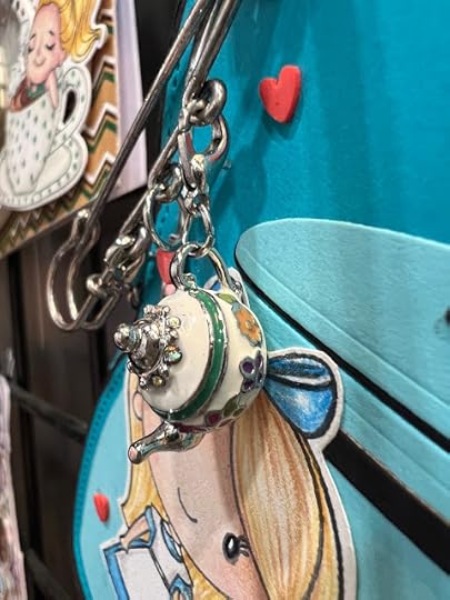 The cute teapot charm that was attached. (This would be for a ring-style album and not a flat card, apparently.)