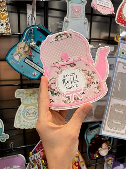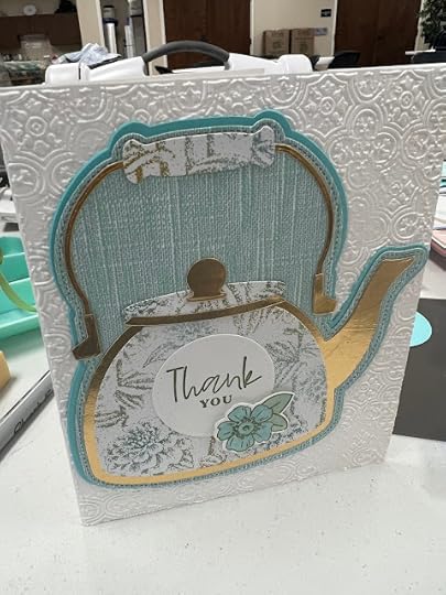 On Friday morning, my friend Gina and I headed up to Duluth, just north of Atlanta, to attend the Stamp and Scrapbook Expo at Gas South Arena. As always, I was looking for tea-themed goodies, and the show did not disappoint! One of the first things I spotted was this teakettle card from Scrappy Boy Stamps, and I had to have this die set once I saw all of the great samples on display. This piece had an Alice in Wonderland theme, and I especially liked …