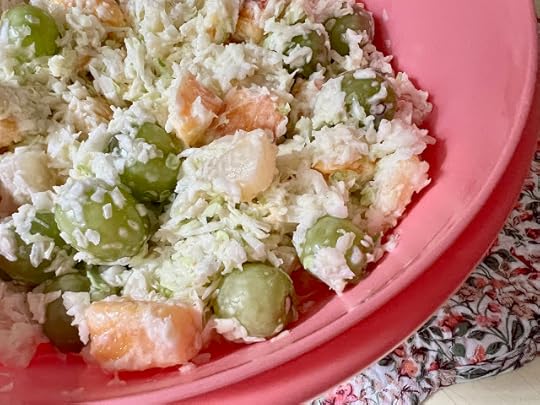 Have you ever had slaw at teatime? Me neither. However, I recently came across a vintage recipe for Fruit Slaw, and it was so delicious that I've been pairing it with a tomato sandwich for lunch! So if your "tea" is more of a "ladies lunch" featuring a salad plate, this is a recipe you may wish to try as well. (It's also featured in this month's column that I wrote for The Coweta Shopper, and I suspect many of you would enjoy it too!) Fruit Slaw
