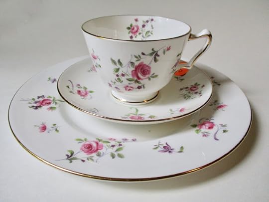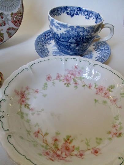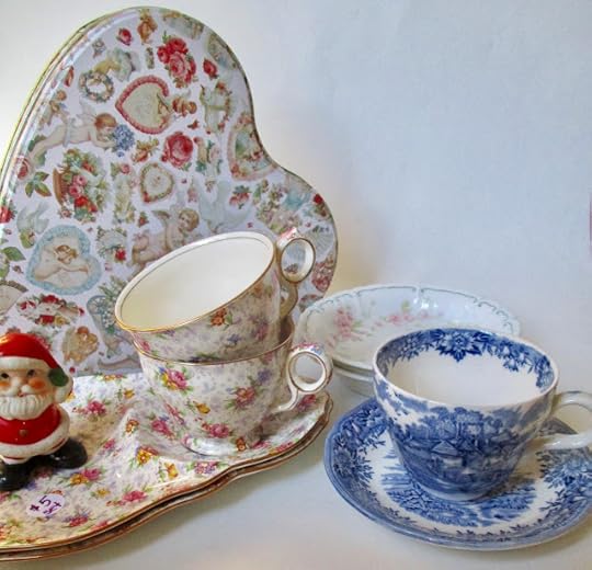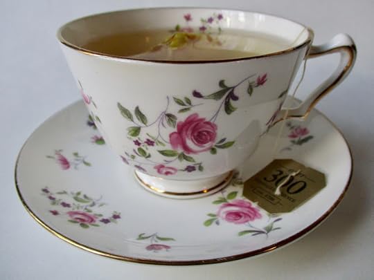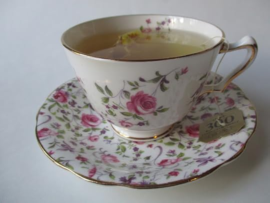 The original teacup and saucer belong to a trio I bought at a friend's estate sale a few years ago.I loved adding to my tea "wardrobe" for just 89 cents, and I must say I'm enjoying drinking my Twinings lemon and ginger tea out of my "new" set. Do you use mix-and-match teacups and saucers, or do you prefer that everything match?