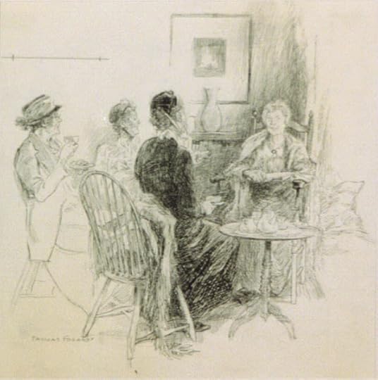 I hadn't checked for tea images on the Library of Congress website lately, so when I tried to play catch-up this week, I found "Four Ladies Having Tea," a pen and ink drawing by Thomas Fogarty. According to the LOC, it was created or published sometime between 1890 and 1938 and was published in the Ladies Home Journal (no issue date given).