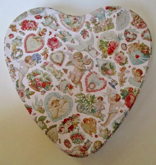 I also found a large heart-shaped candy tin (25 cents) that I wanted for storing small paper craft pieces.