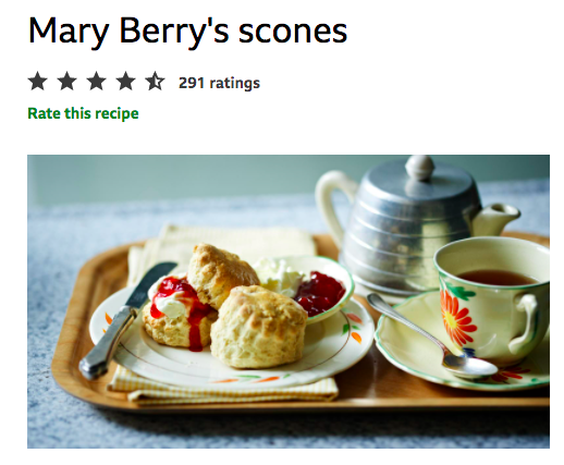 The "country house secrets," by the way, always feature behind-the-scenes recipes from each house, and quite a few of them are appropriate for teatime. Here's a screen grab from the BBC food page featuring Mary's scone recipe (click here if you'd like to print it).