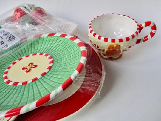 And the last item in the mystery stack? A pretty red platter that will be a great Christmas cookie plate for someone this year. So while I was actually *hoping* to find some vintage valentine goodies, which are usually out right now, I was nonetheless happy to get a thrifty head start on my Christmas cookie plate collecting for the year.