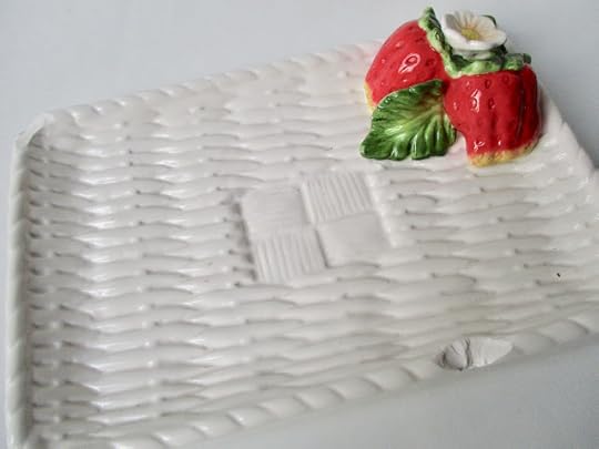 What else was in my mystery package, you ask? Well, first was this strawberry plate, which I would have used were it not sporting two large, very noticeable chips. Bummer. (Any thoughts on how I could repurpose this before I toss it?)