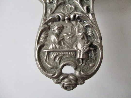 The roses and curlicues around the strainer bowl are so pretty, and even the handle had a scene of some sort, I noted.