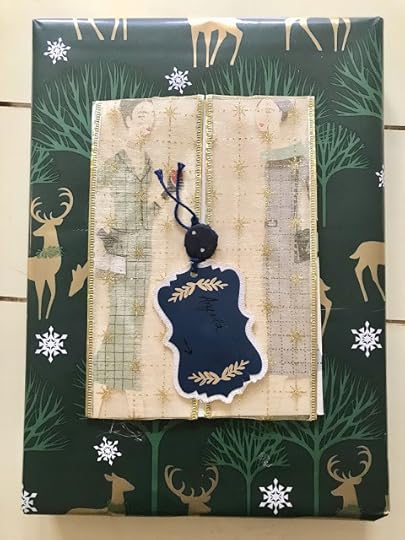 Liz loves to take her time wrapping gifts, so I enjoyed admiring the wrapping on this one. Under the pretty ribbon were some paper doll-type figures that appeared Downton Abbey-era-appropriate. Lovely!