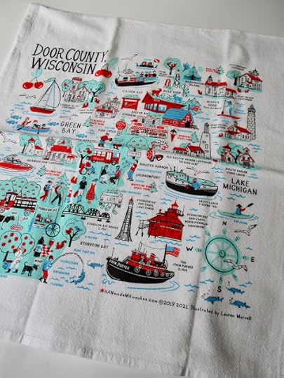 My stepdaughter's family in Wisconsin always treats us well at Christmas, and although we would prefer they just send us family photos and call it done, that is never the case. This year's treats arrived this week, and in addition to a big box of goodies including the locally made chocolates and coffee we love, I also received two tea-ish gifts. This delightful tea towel is from Door County, Wisconsin, which Alex and I had the pleasure of visiting a few years ago.