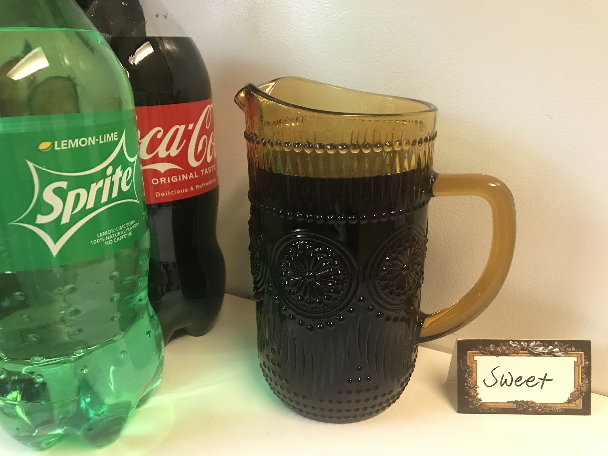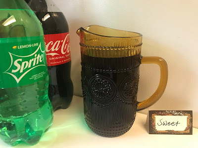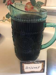 Thanksgiving prep seems sooo much easier since my sister and I decided years ago that each of us would make half the meal. We alternate hosting the gathering, and somehow, having to make only half the dishes seems like a piece of cake (or pie, in my case, since Daddy brought a cake this year). But one thing I have never been able to get exactly right is how to label the pitchers of sweet and unsweet tea. For a few years, I had chalkboard labels about the size of a business card that I tied to the pitcher handles, but those were clunky. This year, I just used some pretty place cards a friend of mine gave me years ago. Still, the cards eventually got lost in the kitchen shuffle, and I got asked, "Now which is sweet and which is unsweet?" Not a huge deal at all, but I keep thinking there's got to be a simple solution to this that I'm missing. Pitchers with "sweet" and "unsweet" printed right on them would be perfect, but alas, I've never seen such a thing!