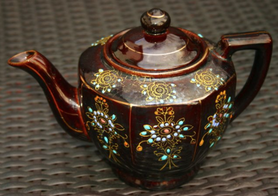 Way back in 2008, I posted this photo of a teapot that had recently been given to me by my mom, who was redecorating and decided to get rid of it. Well, time marched on, and I got prettier teapots and got rid of this one myself. I had assumed it was Japanese, but from the old blog post, I apparently didn't take a photo of the back stamp, so who knows.
