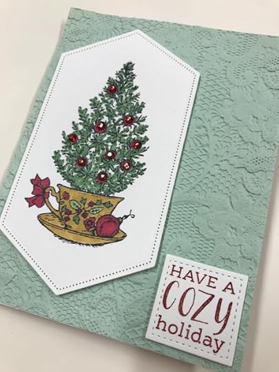 And when I got through with all of that, I started making a few tea-themed cards with this delightful Cozy Cupfuls stamp set by Marcella Hawley for Power Poppy. I still have plenty more cards to make, but I got a great head start thanks to the retreat and the encouragement of my crafty friends.