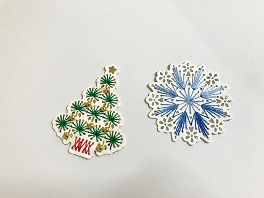 Some of the ornaments have a cloisonné look, like this pretty blue one with Christmas trees on it.