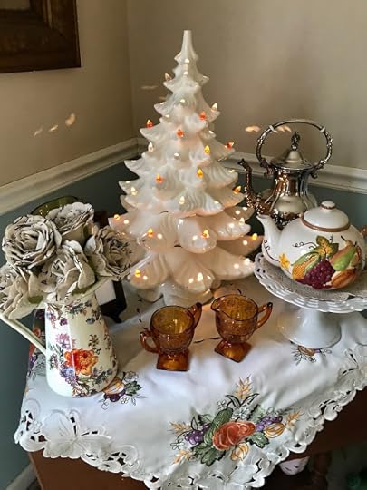 I know some of you probably have the whole house decorated for Christmas by now, but I don't. It takes me a while to ease into Christmas decorating after Thanksgiving, and I've been as late as December 15 in putting up a tree. This weekend, I started going through some of my thrifted finds of the past year and rediscovered a whole new tree that I purchased five months ago at my friend Maxine's moving sale.