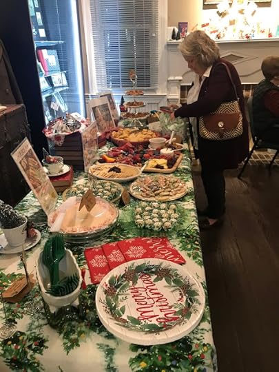 Last week was a busy one with two different book signing events on the agenda. I'm aways grateful for opportunities to speak with those who are interested in my books, but the event I attended last Wednesday night was definitely one of a kind! The Senoia Area Historical Society hosts something they call "Cook the Book" each month, where a cookbook is selected and the members all make a recipe from that book. This month, the featured book was the cookbook I wrote last year, The Vintage Christmas Cookbook, and Alex and I were invited to be their guests, and I was to say a few words and sign some books. Here I am with Beth Young, their program coordinator, who is always a pleasure to work with.