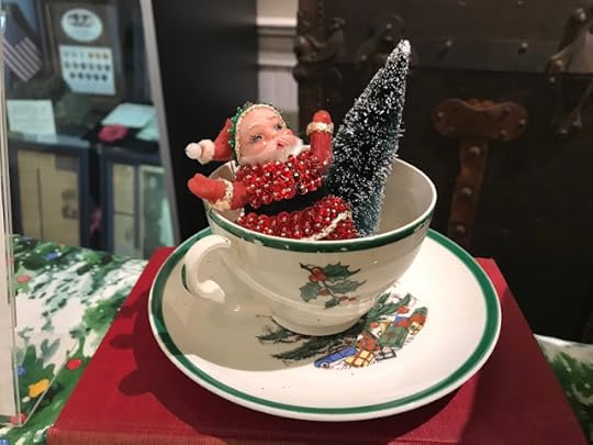And the thing I was most excited about sharing here, vintage Christmas figures in teacups!