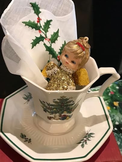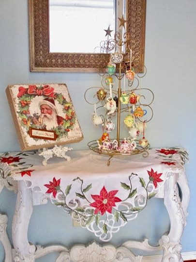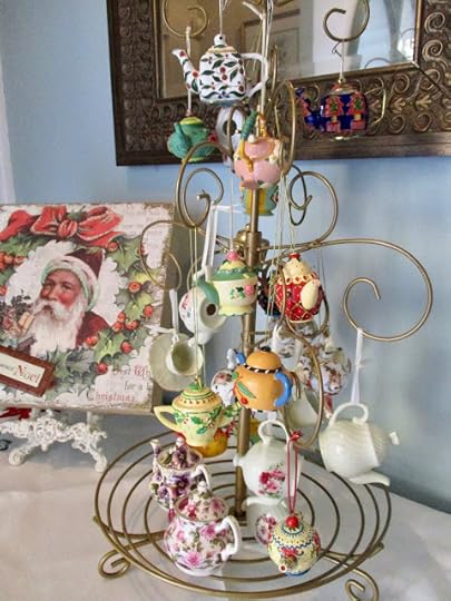 I must confess that it hadn't occurred to me to do anything with my Christmas teacups other than display them on a teacup stand, and this gave me a whole new outlook on that.