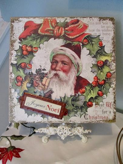 I'm sure I'll add a few more things to this display to fill it out, but first up was a Santa picture I found on clearance at Kroger, of all places, after Christmas a few years back. So who's finished decorating already? I hope at least some of you are like me and just getting started!