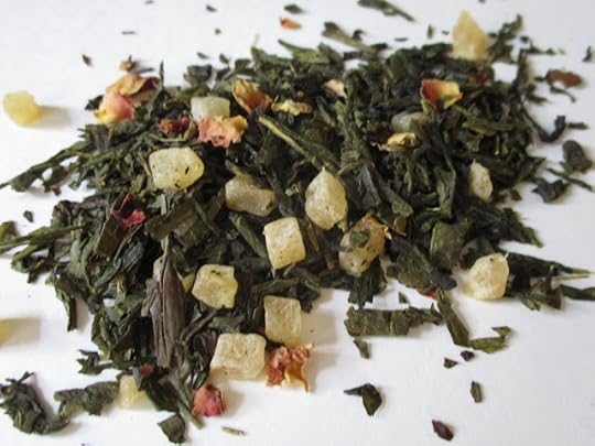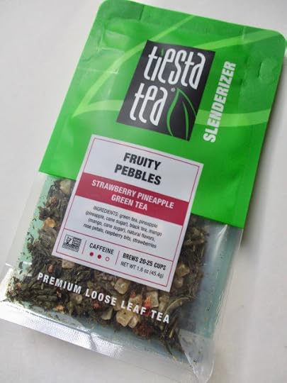 It's their Strawberry Pineapple Green Tea called Fruity Pebbles, which I must say is a misleading name for a tea, as it is nothing like the sugary children's cereal of the same name. In fact, I almost passed it by when I saw the name Fruity Pebbles, but then I read the ingredients, shrugged, and threw it in my cart anyway.