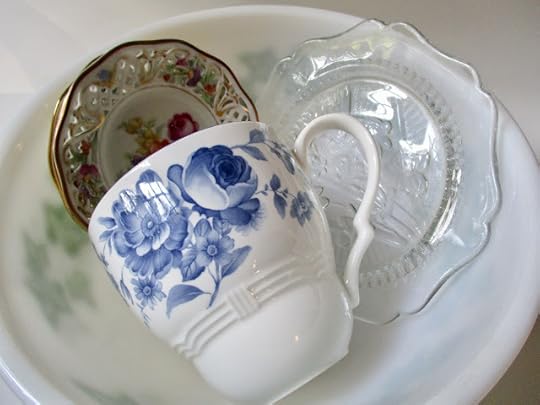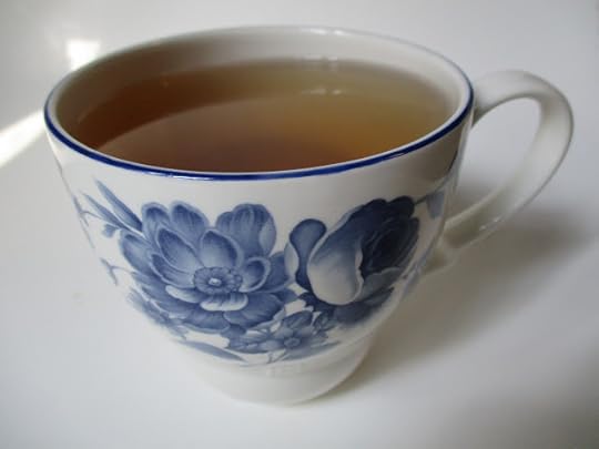 First, I've been bored with my current selection of tea mugs. I use "mugs" in my office and "teacups" when I'm downstairs, but I've got so many mugs already that I couldn't see buying another one. I even have a gift card from T. J. Maxx that is unused from my birthday back in May, but still, I can't see using it on a tea mug. These blue florals at Goodwill, however, caught my eye, and this Nikko French Country pattern tea mug was just 79 cents. Perfect!