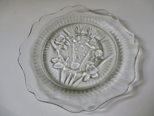 I'll bet some of you are familiar with this Depression glass pattern, Iris and Herringbone. My mother collected this at one point (like me, she collected a lot of stuff "at one point"), and my little sister called it "Irish Hambone." For that reason alone, I thought this saucer, in perfect condition, was worth the 59 cents I paid for it.