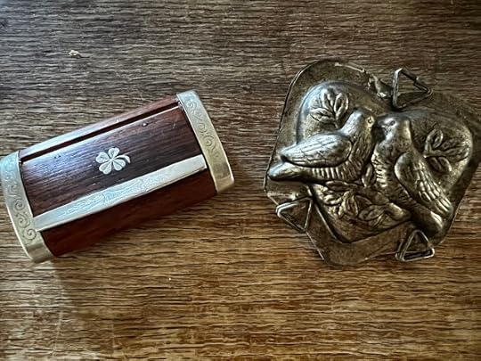 They have time slots spaced at thirty-minute intervals throughout the day, and we arrived promptly for our four-thirty visit, catching a trolley as we ferried our goodies to the site. We could each take two items with us. Kathy took her grandmother’s silver-inlaid wooden snuff box and an antique chocolate mold.
