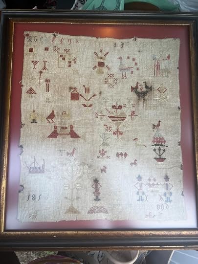 This antique needlework sampler from 1816. I had already figured out it was probably Dutch, which was confirmed, and the gentleman said it might have been made from a kit, which was surprising. (Maybe they had a Dutch Hobby Lobby back in the day?)