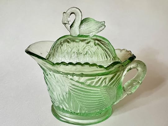 I may use this green glass cream pitcher to hold homemade simple syrup when iced tea weather fully arrives. The lid makes it perfect for that!