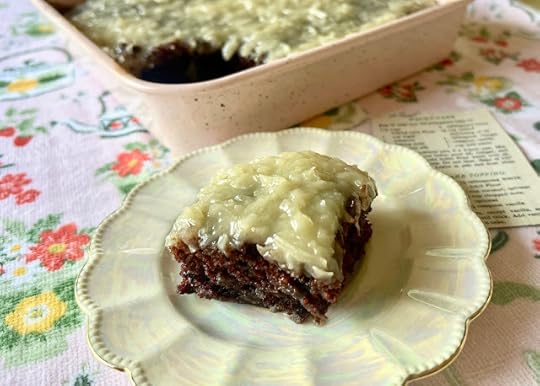 Recently, I came across a recipe for Wacky Cake that had been tucked into the pages of a 1951 cookbook, and I must tell you that this super-moist cake is absolutely wonderful! I made it for my latest column in the Coweta Shopper, and it’s so good that I know I’ll be making it again. This is such a moist, light cake that I think small squares of it would be perfect as a teatime treat.