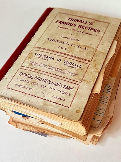 And speaking of history … the cookbook I'm most intrigued by is this one, Tignall's Famous Recipes, which was compiled by the Tignall P.T.A. in 1951. You know the recipe for Wacky Cake I shared on Friday? It's one of the recipes that was tucked between the pages of this well-loved cookbook. I'd never heard of Tignall, Georgia, until I bought this book, and curiously enough, as I headed to my friend Kathy's house in Statesboro following the craft retreat in Lavonia, lo and behold, we passed right through the small town of Tignall, so I was delighted!